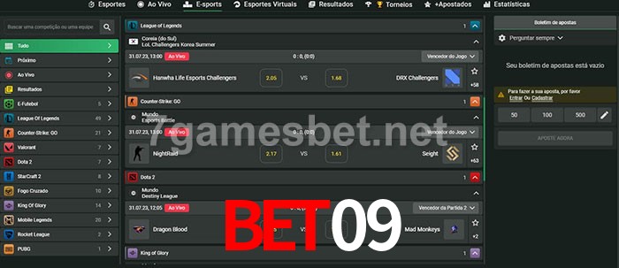 O bet09 oferece uma grande seleção de opções de apostas em e-sports com probabilidades competitivas